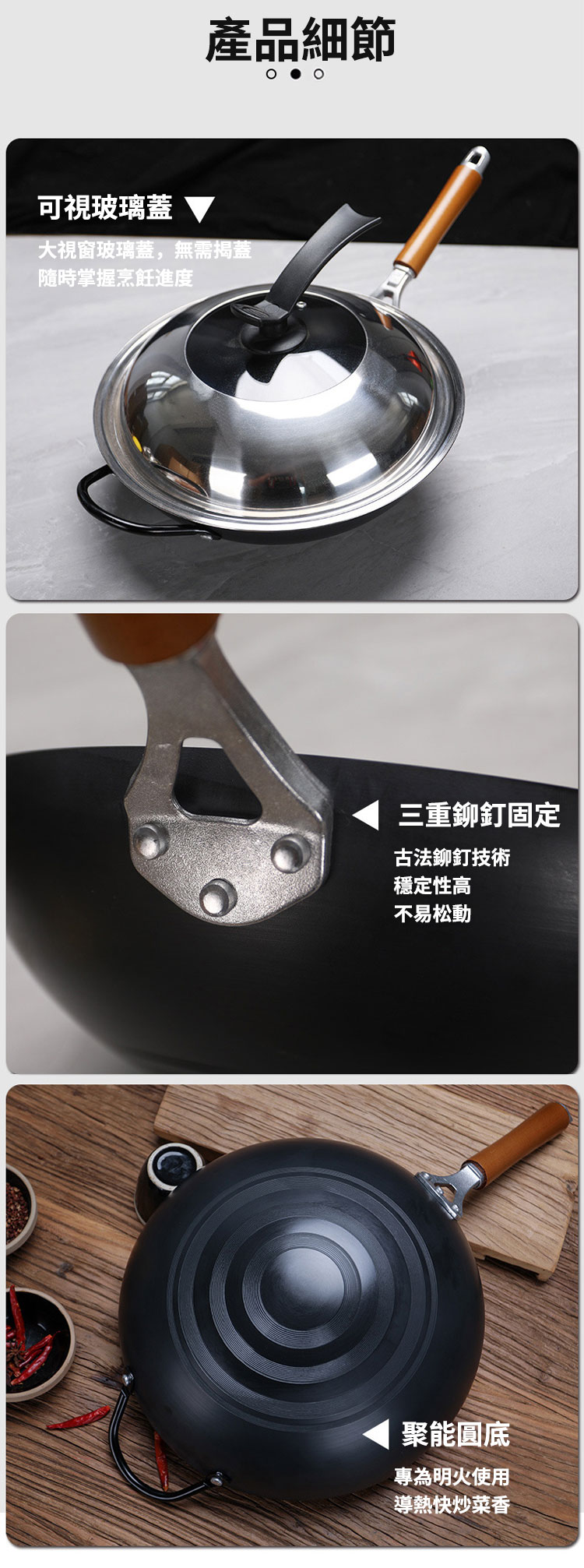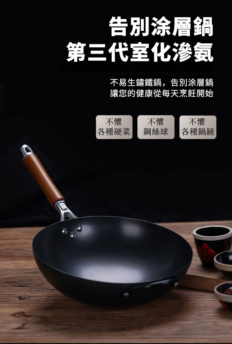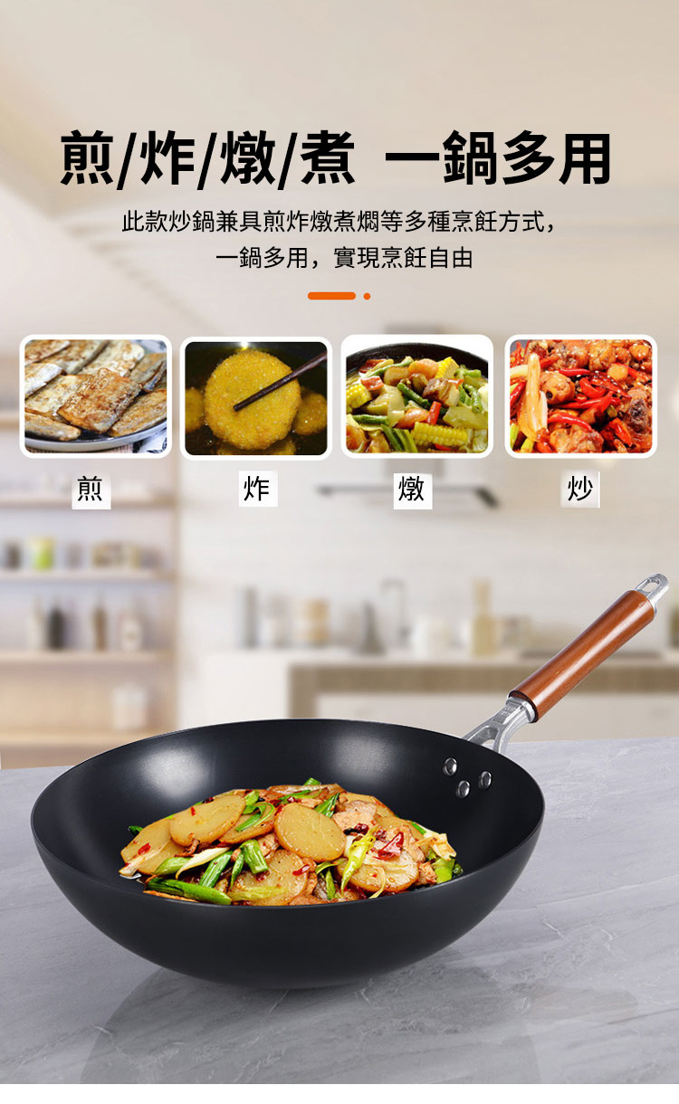 老式無涂層精鐵鑄造傳統鐵鍋