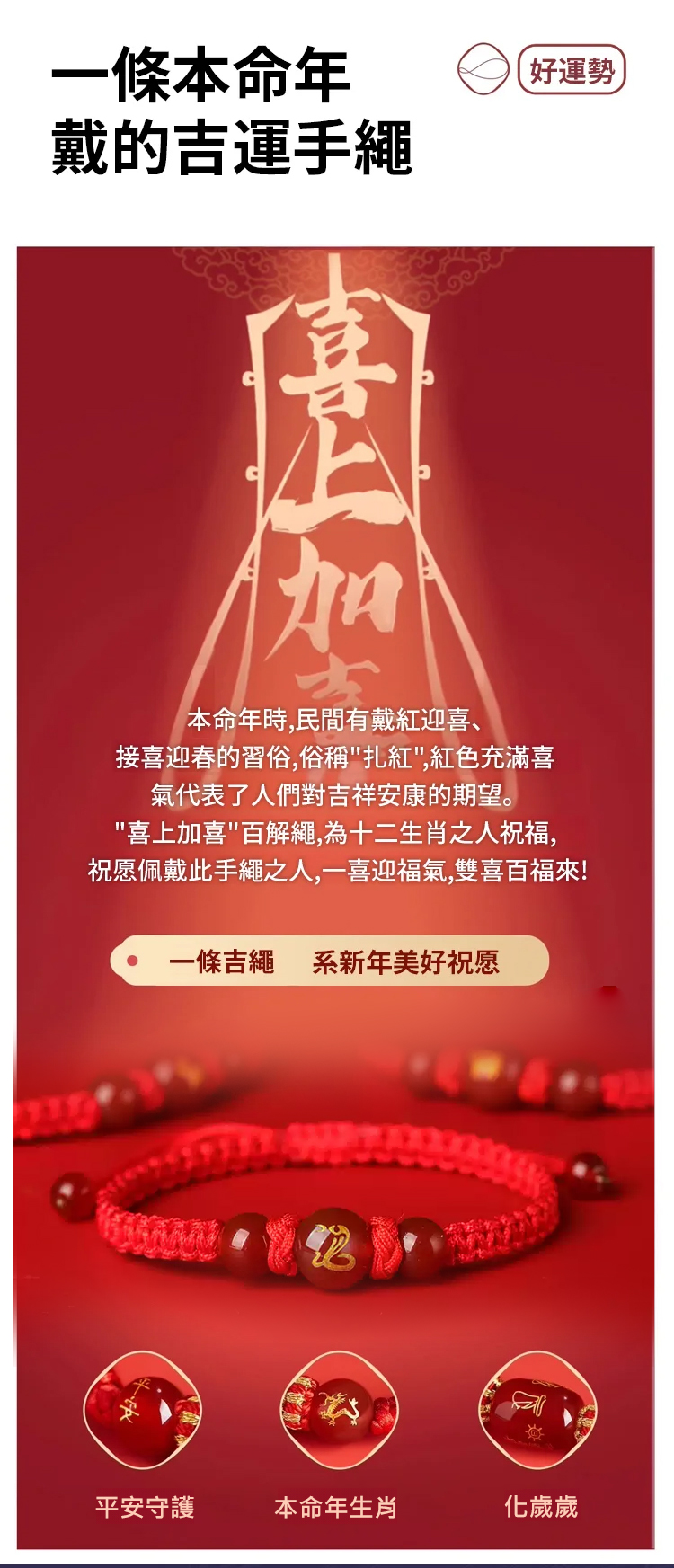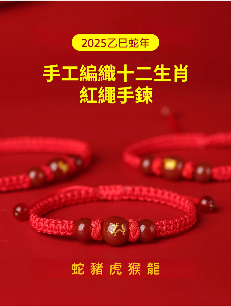 2025蛇年十二生肖轉運紅繩手鍊